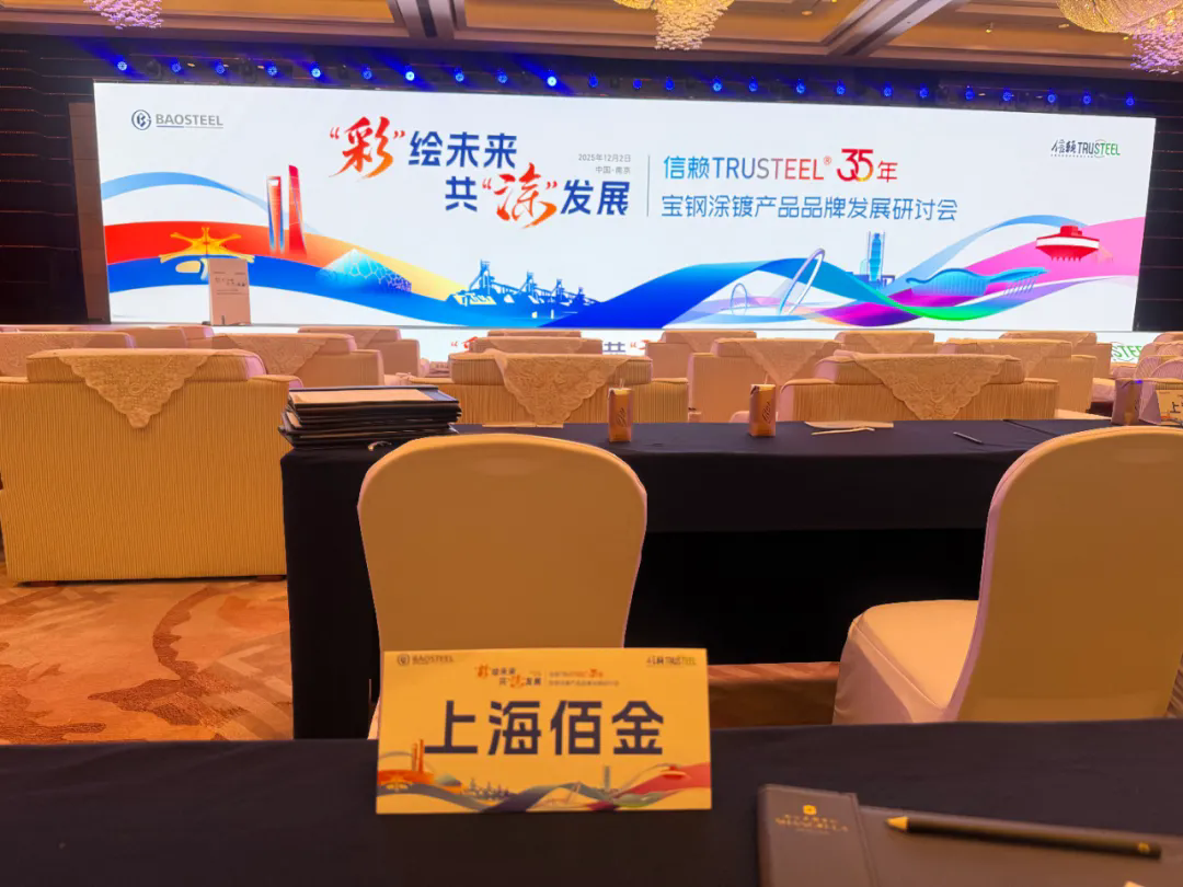 2025年12月2日,以“彩”繪未來 共“涂”發展 為主題的寶鋼股份“信賴TRUSTEEL® 35年涂鍍產品品牌發展研討會”在南京香格里拉酒店隆重舉行。上海佰金實業有限公司作為寶鋼涂鍍產品長期代理商,應邀參加此次行業盛會。
